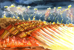 Support for the celestial intruder, an electrical and magnetic brown dwarf star, comes from the concepts of the Electric Universe (EU), a group of independent scientists led by Wallace Thornhill and David Talbott who authored The Electric Universe and Thunderbolts of the Gods. Their ideas steer away from the electrically neutral, gravity-driven universe. Their beliefs and research lead toward an electrical-magnetic universe that not only provides stability for our Sun and its planetary system, but also gives causes for infrequent catastrophism when the two star systems of the Sun and a brown dwarf, called Nemesis, clash. Charge separation and charged celestial bodies can create violent high-energy arc discharging between bodies. The evidence of these arc discharging events that caused Earth's Great Deluge are readily seen on the surfaces of most solar system planets and moons. In the Thunderbolts of the Gods, the claim is made that man has witnessed such events and recorded them in rock art, friezes carved on the walls of megalith temples, and in written and verbal traditions. These witnessed events are catalogued by David Talbott as archetypes of the ancient sky which are plasma displays on an interplanetary scale. Most times, as the Nemesis star system crossed into the Sun's planetary system, ancient mankind was lucky enough to witness arc discharges and other electrical plasma displays without Earth being harmed.