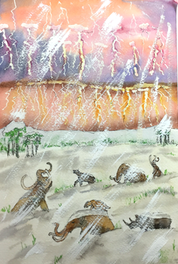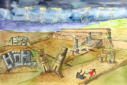The aftermath resulted almost in total destruction of mankind's existing infrastructure and well advanced civilizations. The continuing polluted atmosphere, slowly retreating sea level, colder climate, and fouled land surfaces drove the survivors into a Stone Age existence that occurred from 11,500 years BP going forward. The paradigm of mankind evolving from that Stone Age period onward into more progressively advanced civilizations is seriously challenged. The survival of many stone megalith complexes around the world begs the question that man had advanced civilizations prior to the time of the Great Deluge. The Great Deluge answers the question of a large extinction event of fauna and flora, but also the disappearance of ancient civilizations going back much further than 4000 or 6000 BC, which is still the consensus thinking for the beginning of civilized man.